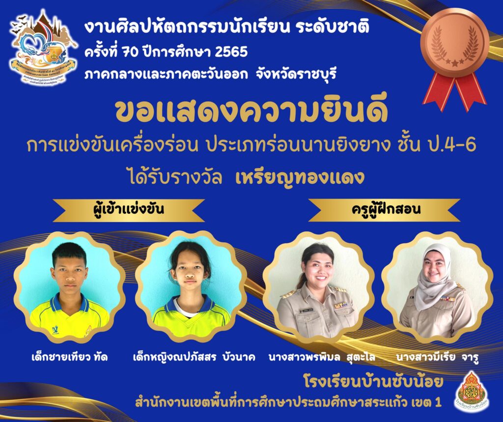 ผลการแข่งขันศิลปหัตถกรรมครั้งที่ 70 ปีการศึกษา 2566 ภาคกลางและภาคตะวันออก จังหวัดราชบุรี 26 มกราคม 256610 กุมภาพันธ์ 2023 admin ข่าวประชาสัมพันธ์ ผลการแข่งขันประกาศแล้ว โรงเรียนบ้านซับน้อย ขอขอบคุณทุกกำลังแรงเชียร์แรงใจที่มอบให้เด็กๆทุกรายการการแข่งขันนะคะ ซับน้อยน่ะ ธรรมดาซะที่ไหนกัน admin
