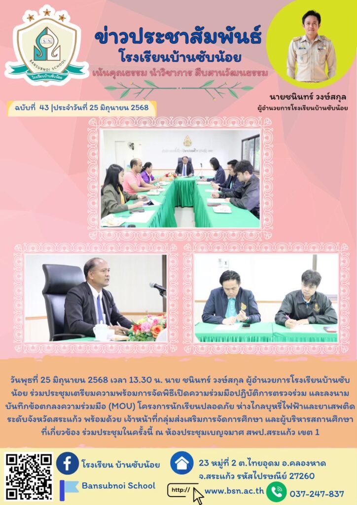 ประชุมเตรียมความพร้อมการจัดพิธีเปิดความร่วมมือปฏิบัติการตรวจร่วมลงนาม MOU 25 มิถุนายน 256830 กันยายน 2025 admin วารสารประชาสัมพันธ์ admin