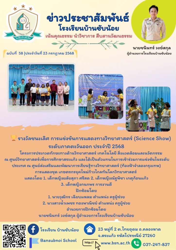 การแข่งขันการแสดงทางวิทยาศาสตร์(Science Show) 23 กรกฎาคม 256830 กันยายน 2025 admin วารสารประชาสัมพันธ์ admin